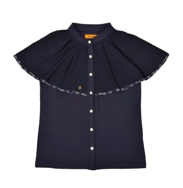 クラシックなケープデザインをモダンに昇華し、上品さと機能美を併せ持つブラウスが誕生しました。