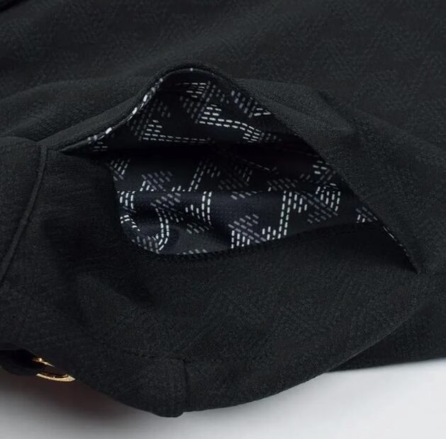 こだわったのは何気ない瞬間に隙間からのぞくオシャレ感。ポケットの内生地や、腰回りの内側にレザレクションの代名詞である幾何学模様をプリント。