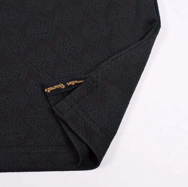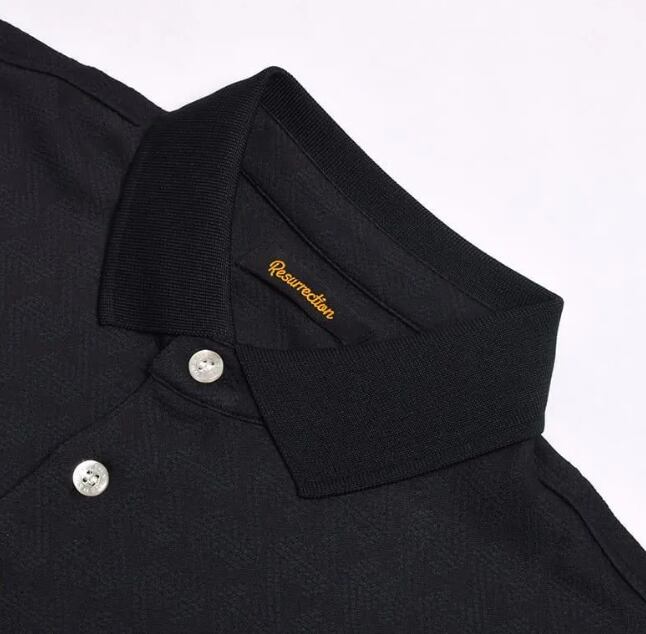 シンプルで合わせやすいけれど普通すぎないポロシャツ。特徴はなんといってもジャガード編みで表現したレザレクションオリジナルの幾何学模様。