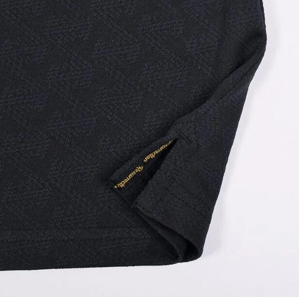シンプルで合わせやすいけれど普通すぎないポロシャツ。特徴はなんといってもジャガード編みで表現したレザレクションオリジナルの幾何学模様。