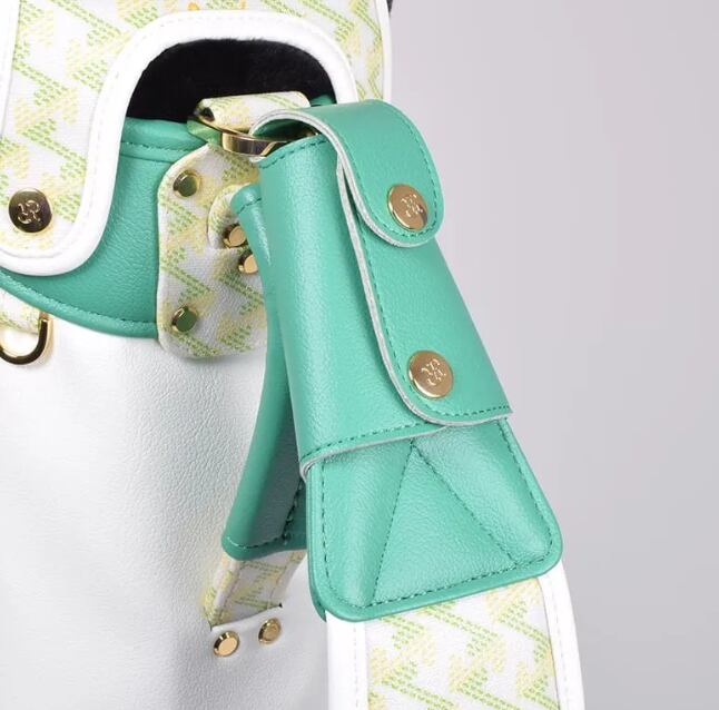 ゴールドの金具や、高級感のある合皮と組み合わせる事で大人っぽくラグジュアリーな雰囲気が漂い、上品なキャディバッグに仕上がっています。