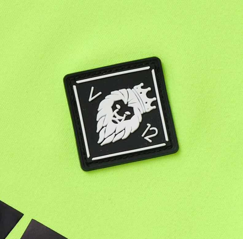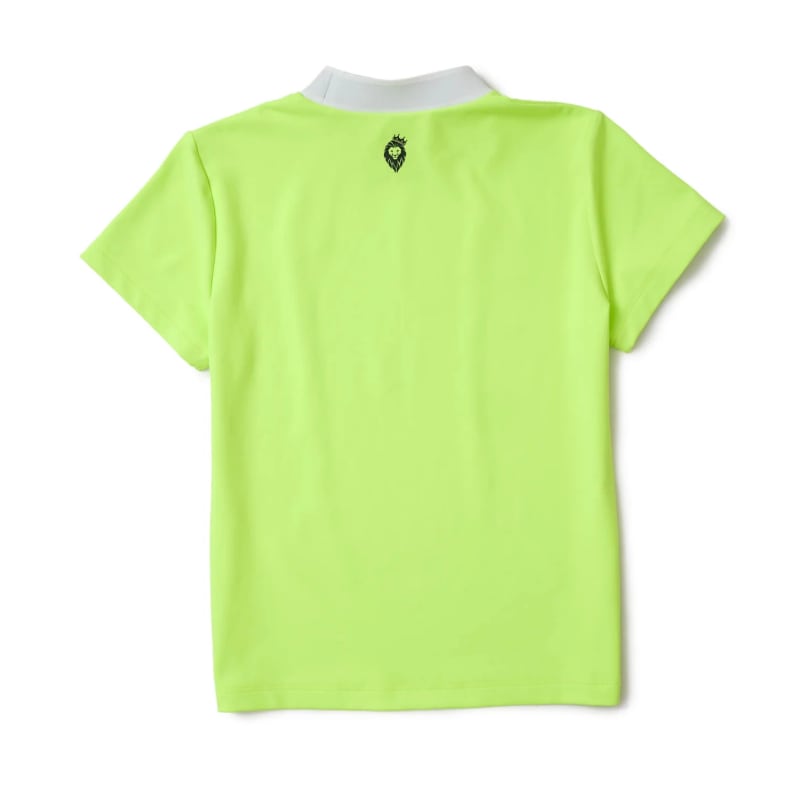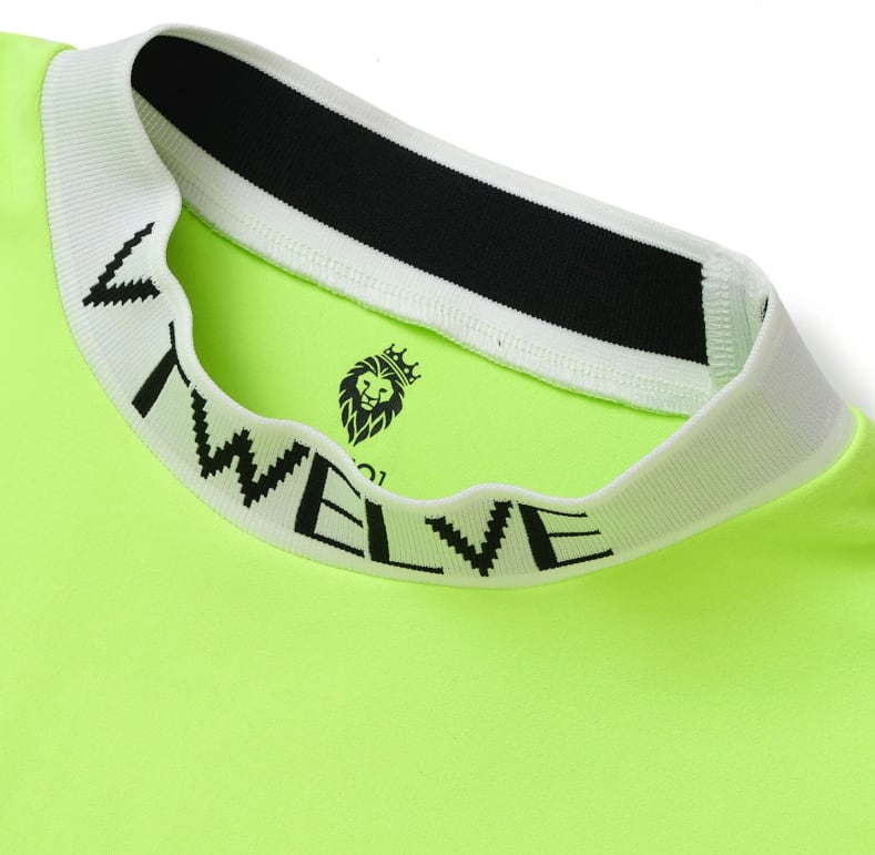 ネックはロゴ入りのリブ仕様。