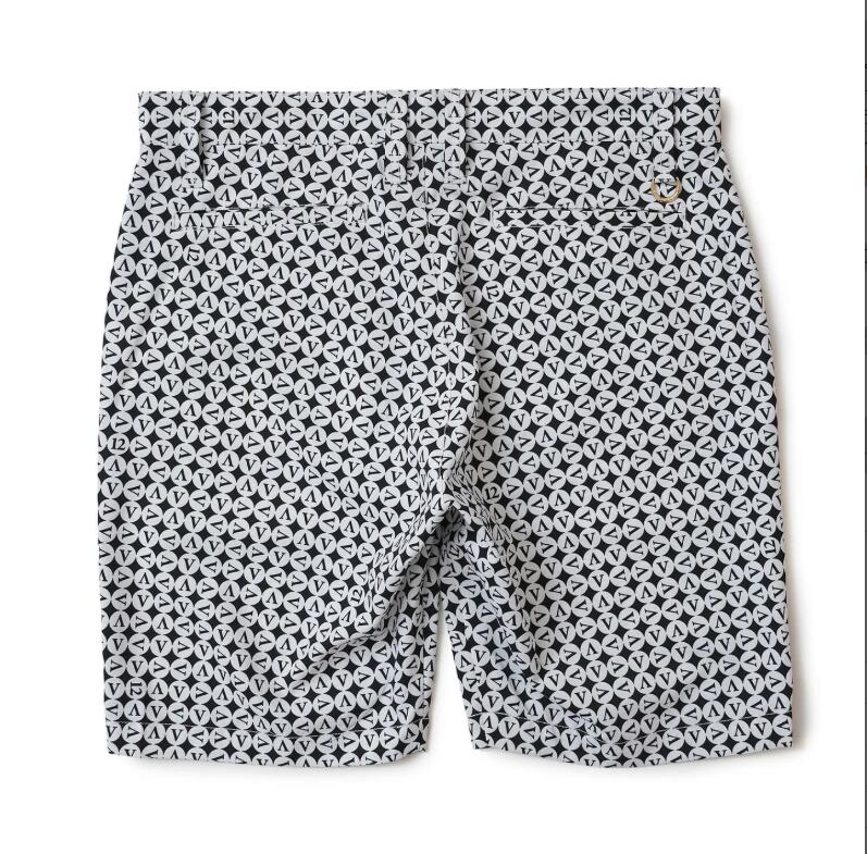 サークルの中に「V」と「12」を配置した総柄がインパクト抜群のショートパンツ。