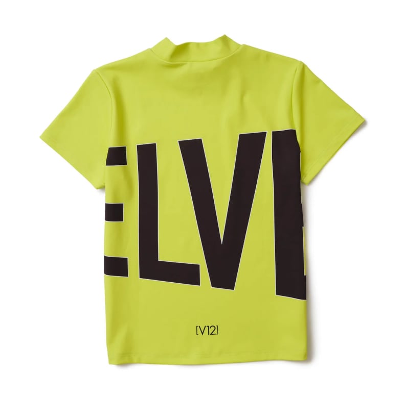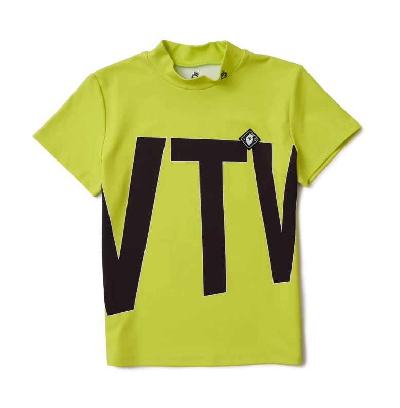 ボディ全体にプリントで表されたロゴがインパクト抜群のモックネック。