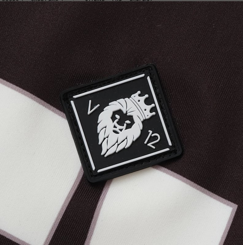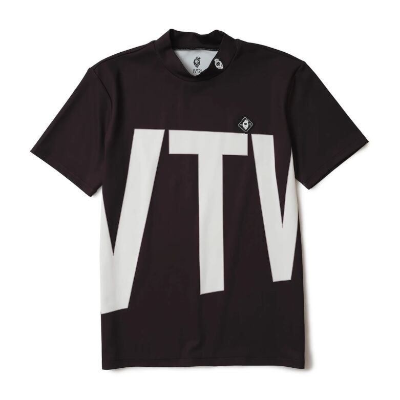 ボディ全体にプリントで表されたロゴがインパクト抜群のモックネック。