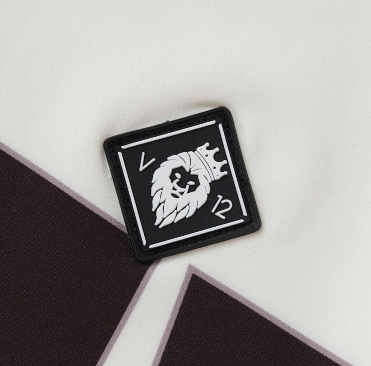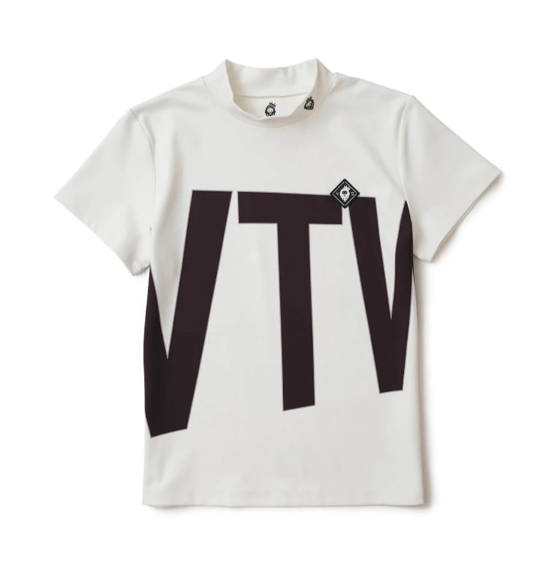 ボディ全体にプリントで表されたロゴがインパクト抜群のモックネック。