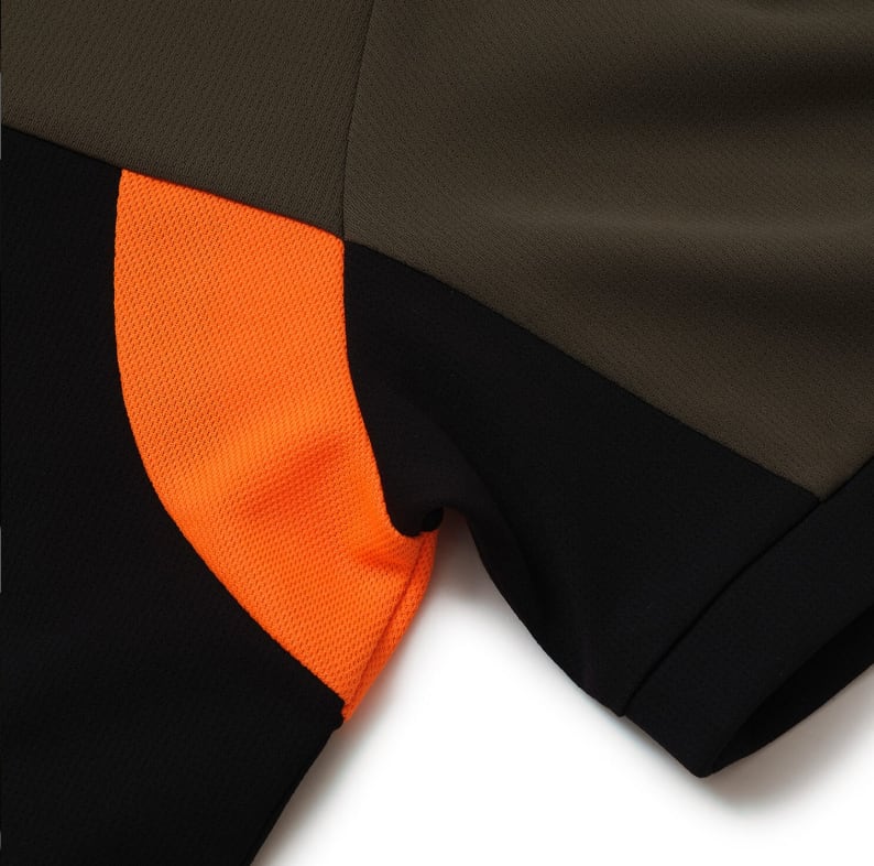 高いストレッチ性と吸水速乾性を備えた蒸れを軽減する素材を使用しているため快適な着心地です。