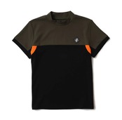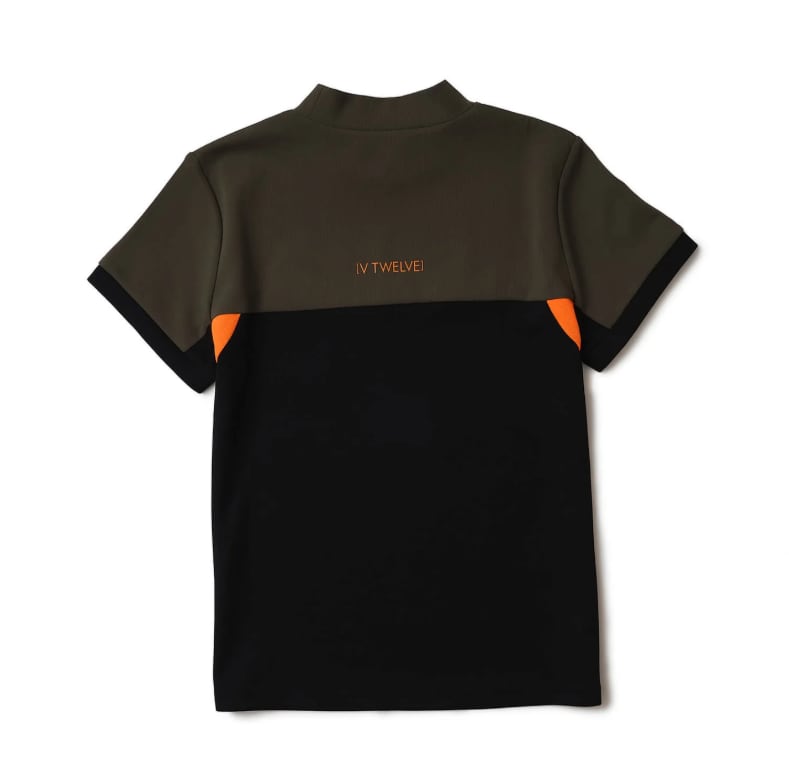 ワンポイントのネオンカラーが目に留まるモックネック。