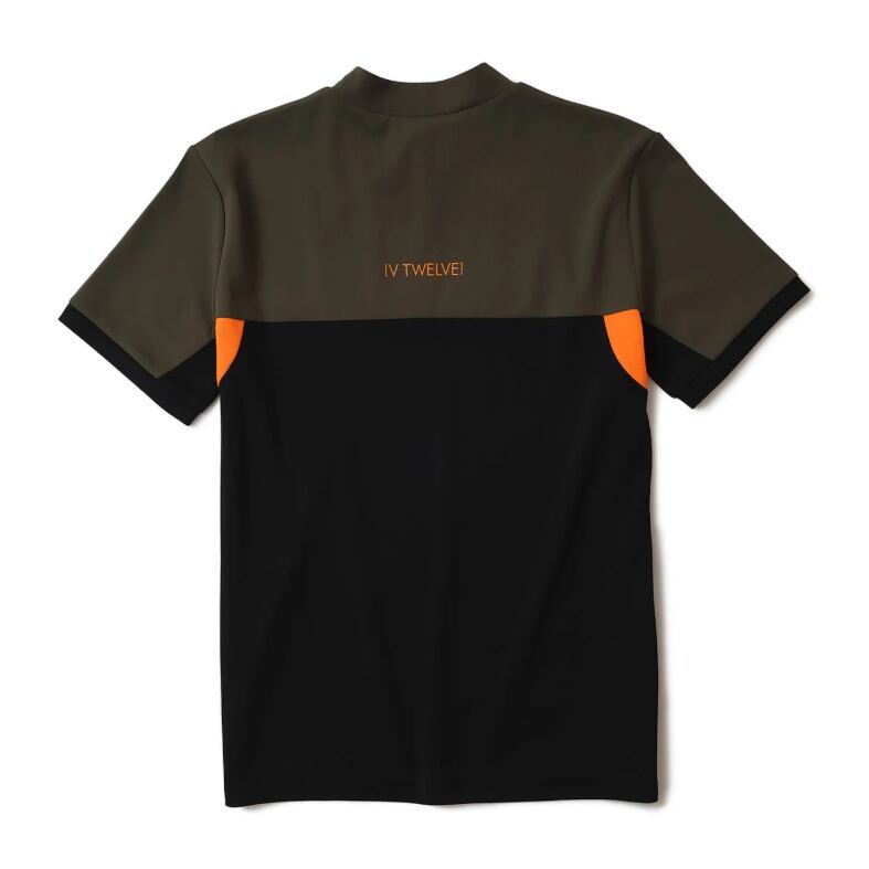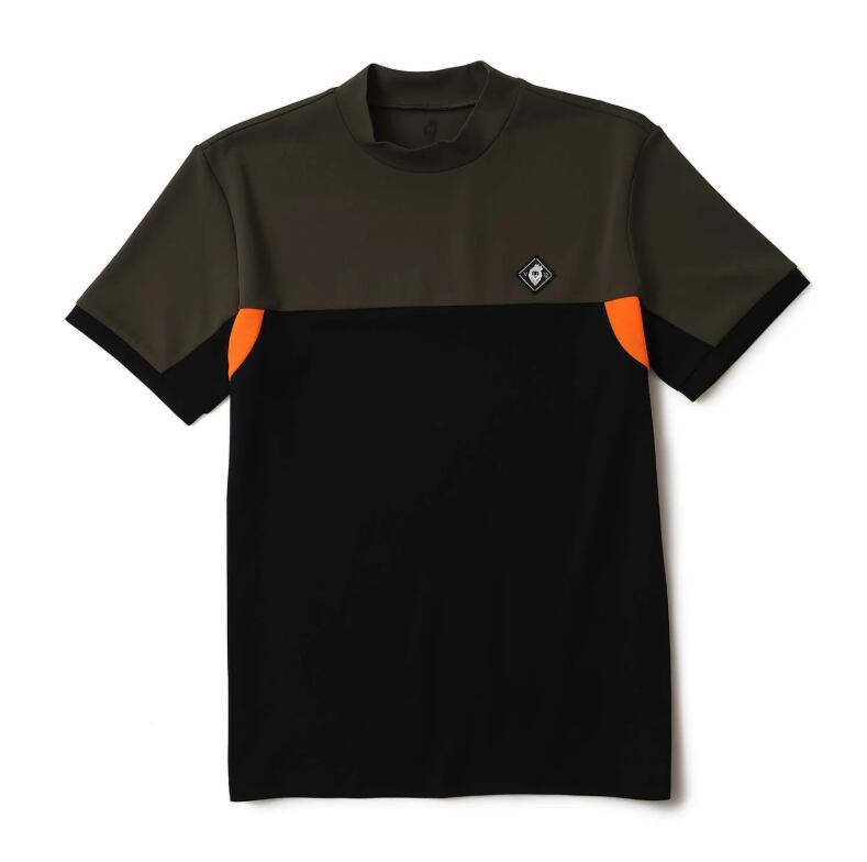ワンポイントのネオンカラーが目に留まるモックネック。
