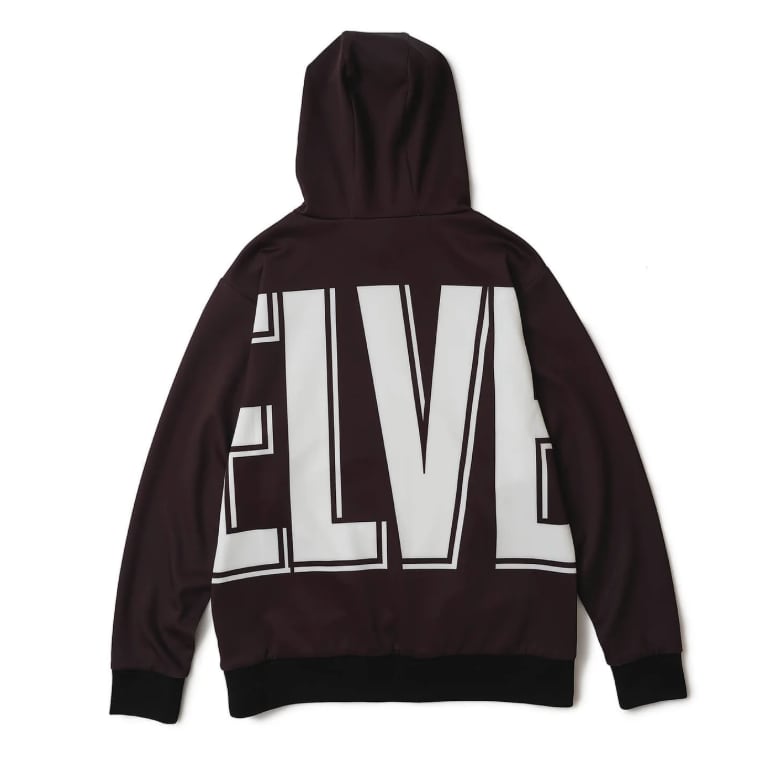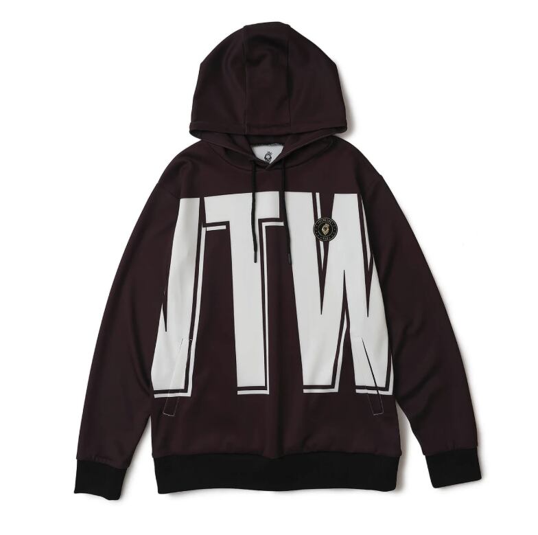 ボディ全体にプリントされたロゴがインパクト抜群のパーカー。