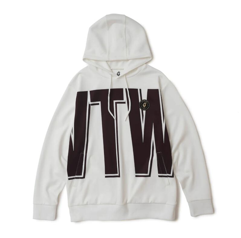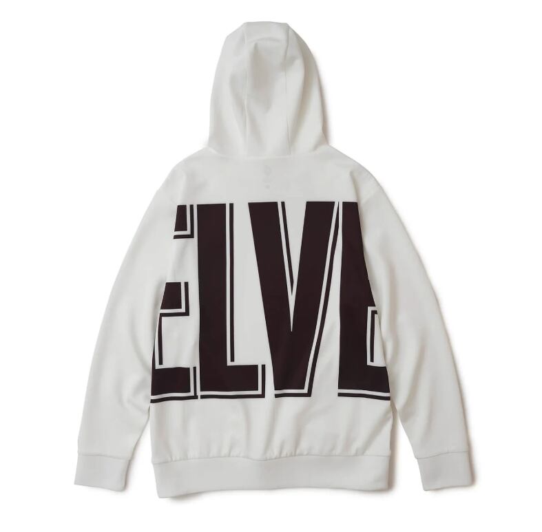 ボディ全体にプリントされたロゴがインパクト抜群のパーカー。