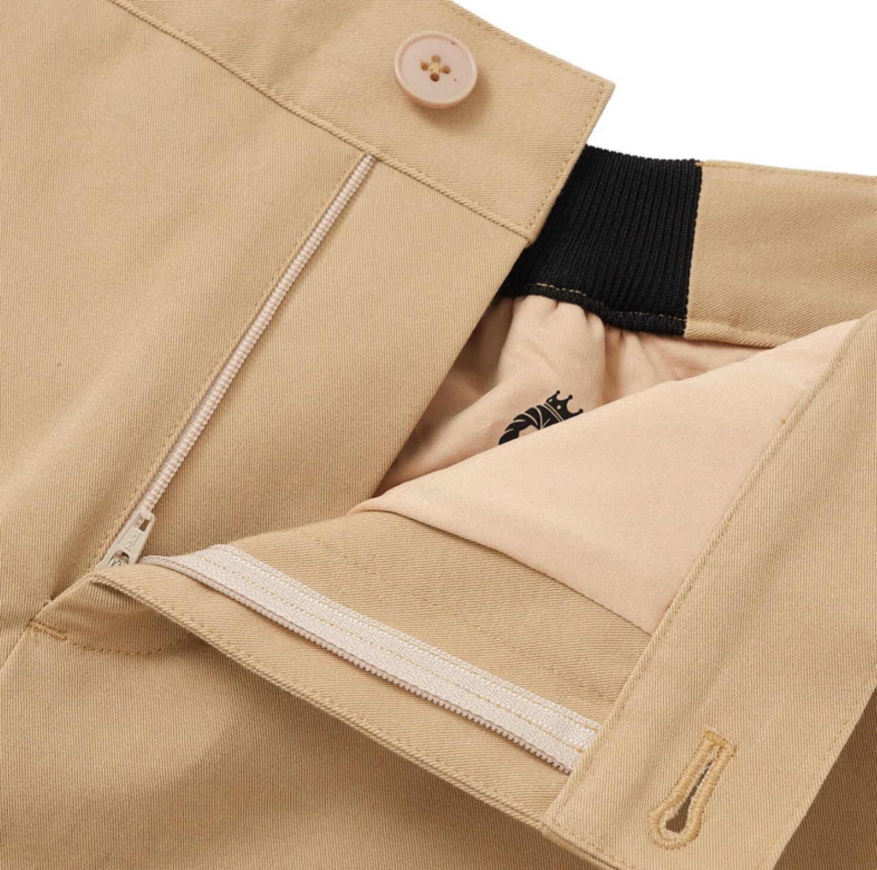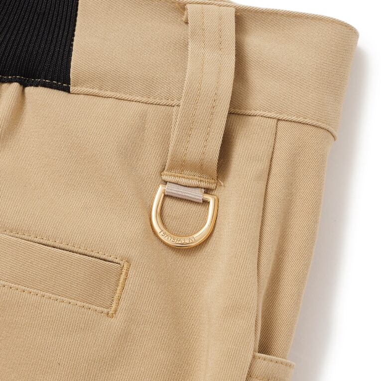 背面の一部はウエストゴム仕様で、ベルトループも付いているのでサイズ調整もお手軽です。