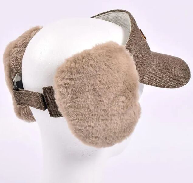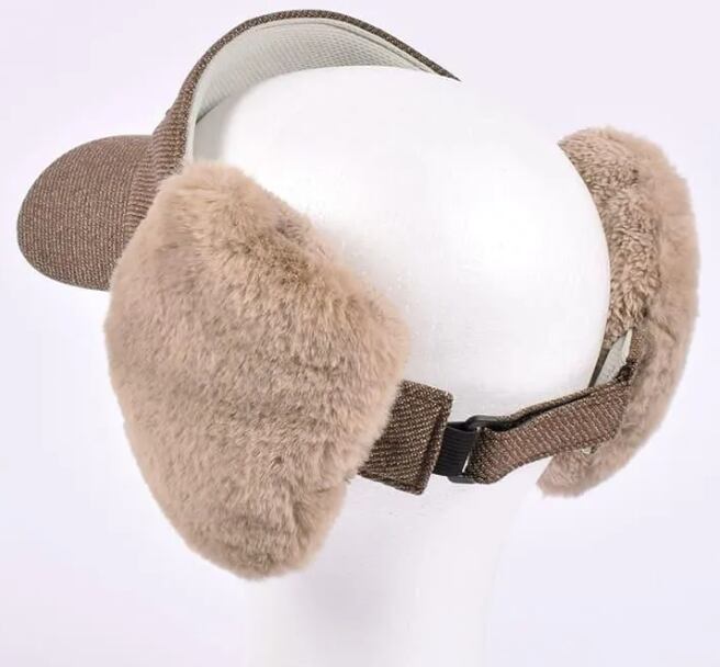 秋冬の定番生地である”ボア”。冬の冷たい風を和らいでくれる癒し生地です。このボア生地の大きな耳当てが特徴的なサンバイザー。