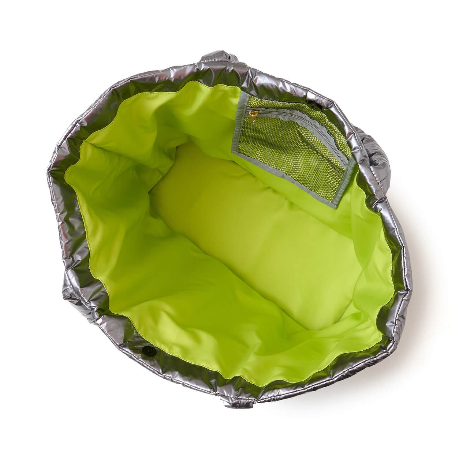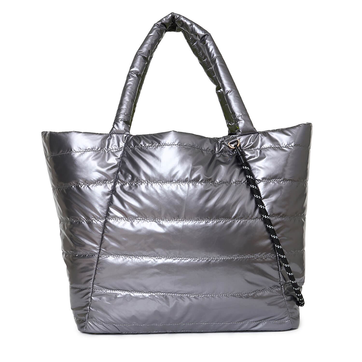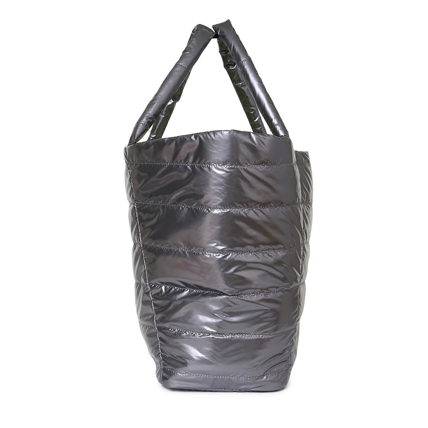艶やかな光沢素材が目を引くビッグトートバッグ。