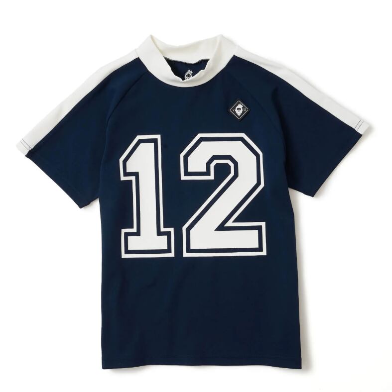 フロントに大胆にプリントされたナンバリングが目を引くモックネック。